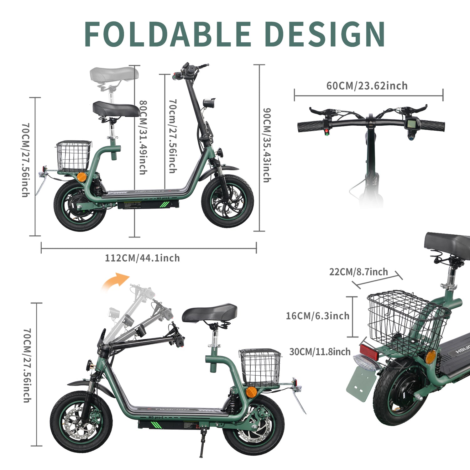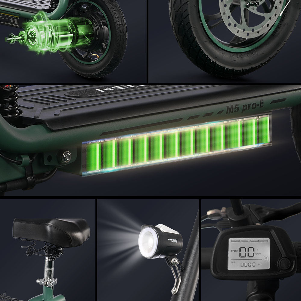 Silnik o mocy 500 W zapewnia prędkość maksymalną 44 km/h, a akumulator 48 V 13 Ah zapewnia zasięg do 40 km.